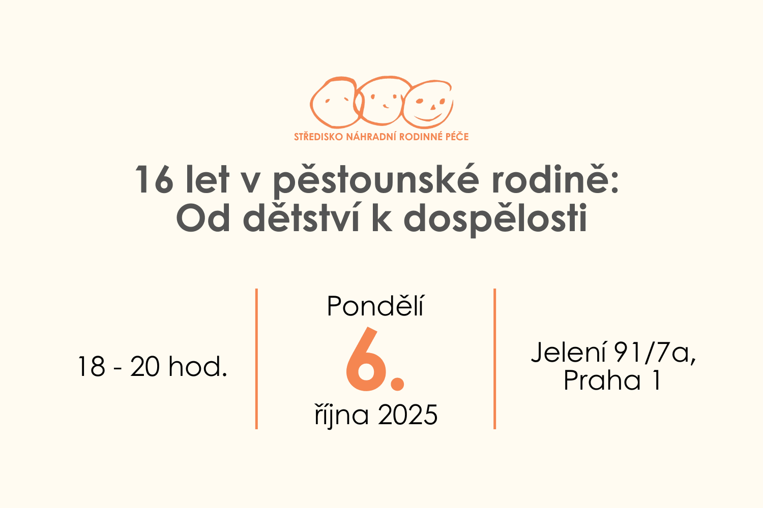 Středisko Vás zve na setkání zájemců a žadatelů o náhradní rodinnou péči „Cestou náhradní rodinné péče“, které proběhne v pondělí 13.6. ve Vzdělávacím centru Tereza na Haštalská 756/17, Praha 1.