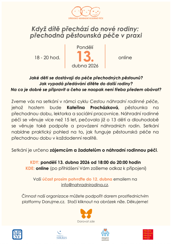 Vaši účast prosím potvrďte do 12. dubna emailem na info@nahradnirodina.cz.